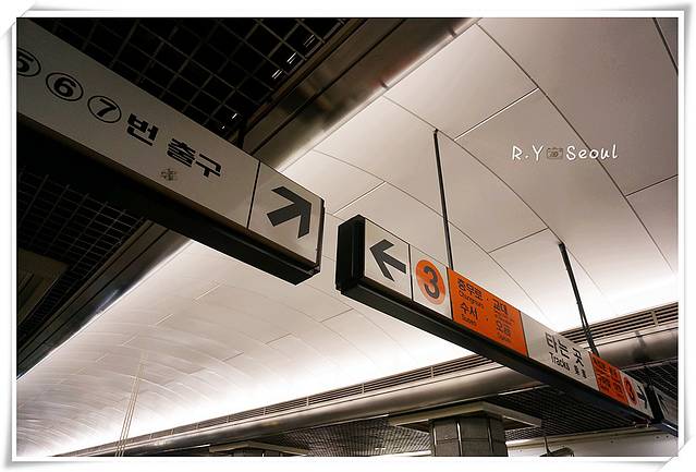 景福宫到明洞要在忠武站倒一次车,全程好像不过五站,很快就到。地铁上就没有拍照了,只记得人不多,车厢空旷。要特别提醒的是,首尔地铁的老弱病残专座真的只有老人在坐,车厢两端标志醒目的红色椅子就是,年轻人占座会被鄙视哟,请千万注意~