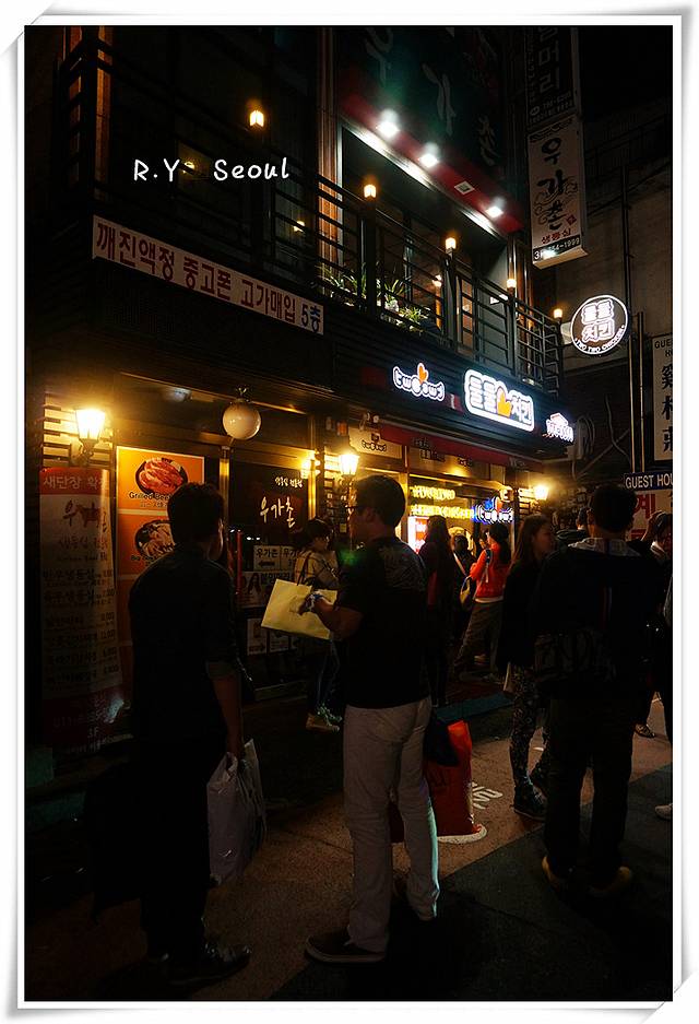 回到明洞雨势渐缓,虽然不过六七点,但我们已经累得连外出觅食的力气都没有了。所幸酒店隔壁就是TWOTWO炸鸡,而且因为天气原因排队的只有三个人!!为什么三个人要叫“只有”呢?因为平时它是这样的……(图片为第二天晚上补拍)