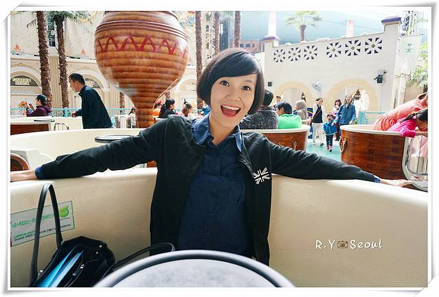 先放几张室内项目图,咖啡杯。底下大圆盘是会整个斜起来一起转的,玩着有点儿晕,但已经算很温和的了哈哈。排队只排了一轮大概五分钟吧,后来回来时候已经是1.5小时了。