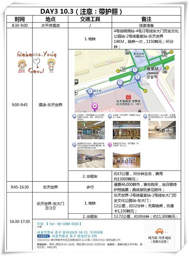 PS:我有一份特别详细的WORD版行程,包括地铁如何换乘,交通工具如何选择,问路用的韩文手卡,各路段交通费用、耗时多少以及各个地点间的路线图,需要的朋友太多,因此放出百度云下载链接,烦请不要大范围传播,感恩~
