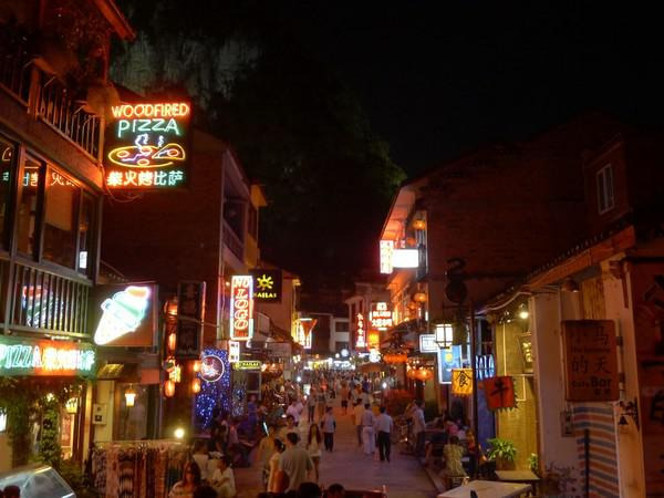 在班长的提议下,我们报了市区一个漓江阳朔西街一日游的团,全班成团。