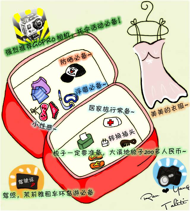 去大溪地的必备物品:1、护照。2、驾照。机票确认书,酒店确认书,保单。3、现金,信用卡。4、防晒