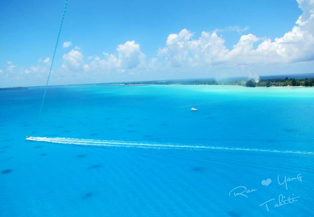 这个活动一定要在天气好的时候参加哦,这个活动特别挑天气,天气好才能看到多种海水颜色呢。我和臭虫感觉那天看到了六种不同颜色的海水。另外,个人感觉这个活动看到的景色和上去的先后顺序有点关系,因为我们当时是三对,每对都选择的是15分钟300米的。我感觉第一对上去看到的景色最单一,他们大多都是在深颜色的海水转悠,甚至没看到澙湖的颜色。第二对上去的较第一对儿看到的多一些,而我们是第三对上去的,来回拐了好多个弯,看了好多次深变浅,浅变深。很棒的说。据群友说可以跟船老大交流,跟他说你想看哪里。另外还有群友说,如果报30分钟300米的话,就无所谓上去的先后顺序了。另外参加活动的时候如果船老大看到你没有自带Gopro,会在你胸前放一个,然后等你下来会问你要不要购买录像,费用是100美元~