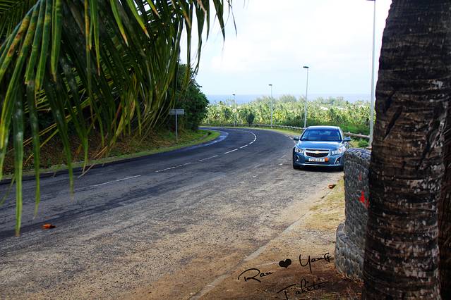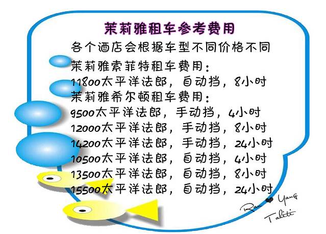为了节省时间,蛋糕拿上就跑酒店前台问租车的事情了。租车的胖美女说,现在已经十一点了,你们确定还要租8个小时吗?今天是周日,很多地方都不开门,而且必须要在四点半前加油,五点前到酒店还车。其实你们租四小时就可以了。我跟臭虫商量后觉得四个小时太短所以仍然决定租8哥小时,亏点就亏点吧。当我付现金的时候,可爱的胖美女想了一下,又退给我3000太平洋法郎,说,就收四个小时的价格吧!好棒,然后验车,拿了地图,出发!