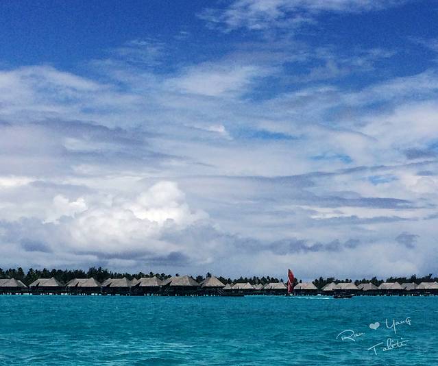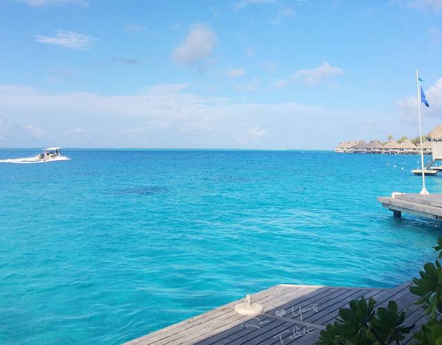 通常茉莉雅到波拉波拉只需要内陆航班直飞就到了。不幸的我们被XC活活安排成了茉莉雅坐船到帕皮提,帕皮提等啊等再坐飞机到波拉波拉。浪费了好多时间,好累。从波拉波拉主岛码头接我们再到酒店办理好入住什么的都要晚上八点多啦。以至于对于之前升级的那晚水屋都都没有好好享受一下。我们升级的水屋房号是203,问了问说下面水深四五米吧。真不敢下去。收拾了一下,我和臭虫就到吃自助早餐的地方点餐了。主要这里可以蹭网哈。这就是抵达波拉的当天,因为飞机时间没能第一时间看到美丽的波拉,早点睡,希望明天晴天。