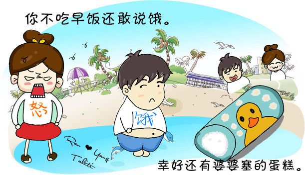 你以为订上闹钟就不会睡过头了吗?当我模模糊糊感觉到有阳光从厚厚的窗帘透过来的时候,哇,都已经九点半啦。我赶紧叫醒臭虫,我说咱们快去吃早餐吧,要不十点就没了。臭虫一扭头看表,生气了,不去了。。。要知道海岛游的早餐起到多么重要的作用啊。后来我看了看酒店给的用餐时间表,发现周日早餐到十点半,结果臭虫还是不去。。。喂喂喂,我生气了!