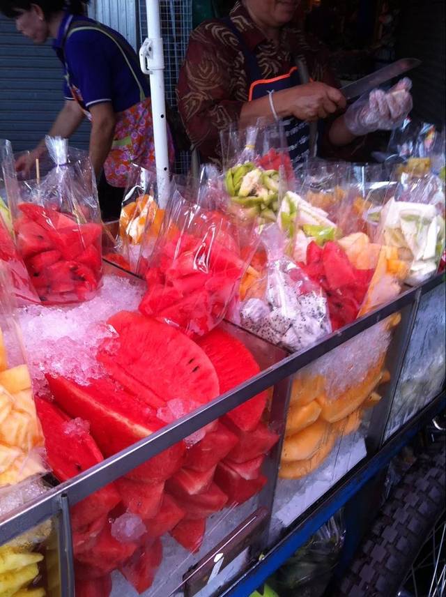 随处可见的水果和饮料,曼谷的水果相对清迈比较多。20B一袋