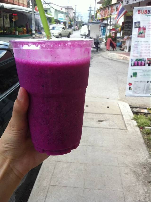 这是在路边随便一家餐厅买的榨火龙果,50B,大约是9RMB,算贵的了,其实在清迈,还是要逛傍晚的市场或者周末市场,物价会便宜很多很多。不过,去清迈,一定要喝当地的水果饮料,真的好好喝。