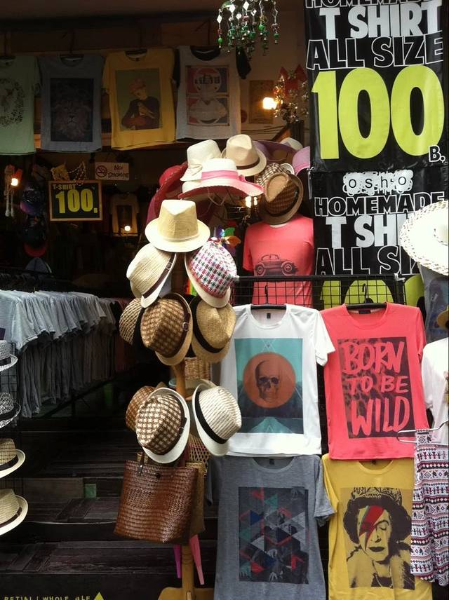 做完按摩,在对面在这里买了几件背心做手信。曼谷周末市场也有许多,正常都是100B一件,曼谷也有80B一件的,比较薄。
