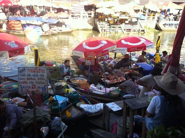从乍都乍周末市场出来,就搭MRT往胜利纪念碑站,下了MRT问路人,找到了去安帕瓦水上市场的Mini van,原本是想去美功铁路市场,但是买票的工作人员告知5月-11月美功铁路都在维修,不会有火车经过,于是就放弃了。直接去安帕瓦水上市场。mini van 80B单程,来回160B,要2个多小时车程。车上挺舒服,睡一觉就到了。