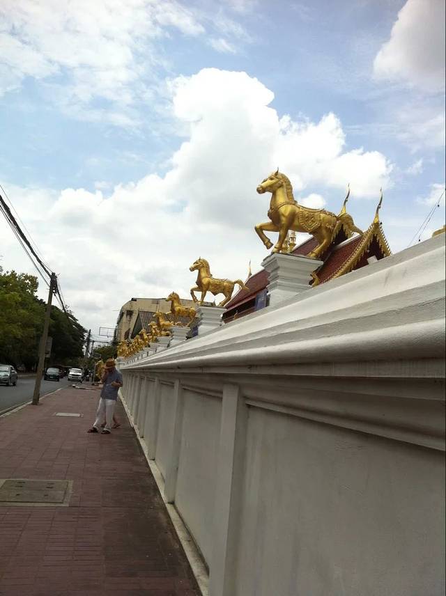 因我并没有特地去某个寺庙,这个是在骑单车时经过的某个寺庙,我也不知道叫啥名字,金碧辉煌,炯炯有神的马儿,我很喜欢。在北门附近。