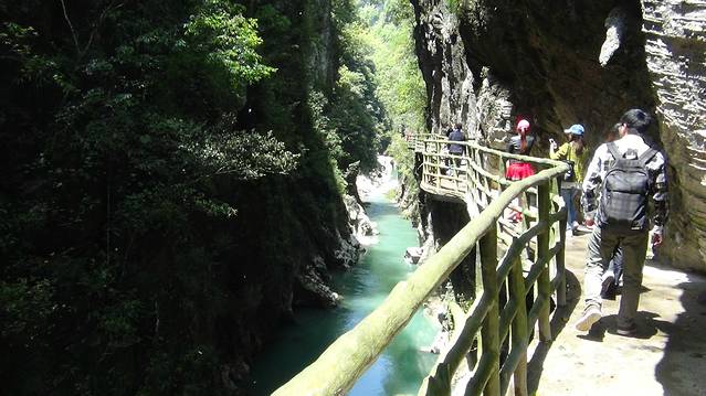 石门河禅境豁达,石门天堑,一望无边,上下壁立,千回百转,栈道因崖壁游走、适山体旋转,鱼鸟瀑布,任意“无为”。