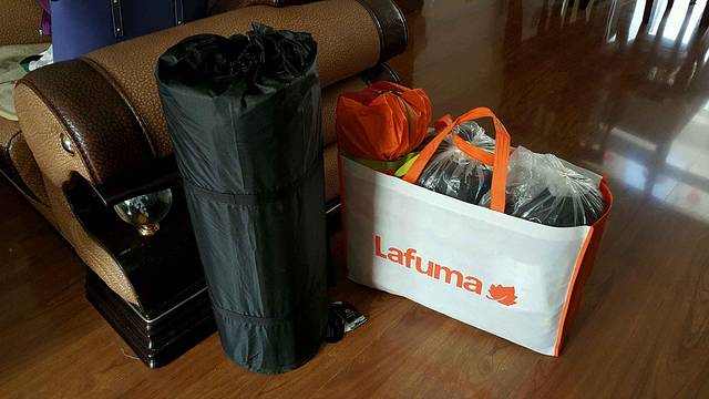准备夜宿湖畔观日出的帐篷、睡袋。