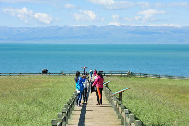 这是我第三次去青海湖赏玩。前两次是在多年前分别与同事、朋友去玩,那是顺时针去转湖的。在第二次转湖时,默想着有朝一日带着老婆,驾着自己的私家车,开开心心地玩青海湖,赏油菜花。这个愿望现在实现了……。