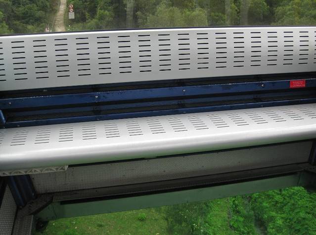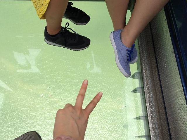 美美的水晶车厢底,这样看下去是不是觉得有点怕怕的~? 好像是“漂浮在半空的椅子”一样!车厢大概坐6-7人左右,别看水晶车的底部是玻璃,这个可不是普通玻璃!足足有3层强化玻璃组成,总厚度4.84厘米,最高负重量为2,250公斤。这个承重量是坐好多个大胖子也不成问题了。