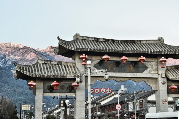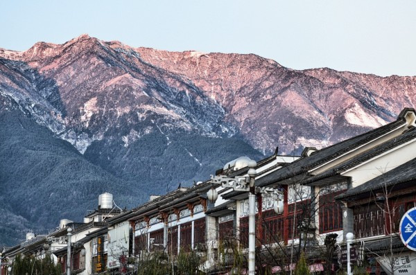 大理古城外,远处的山脉,已经被渐渐升起的太阳染红的轮廓。