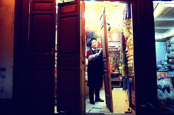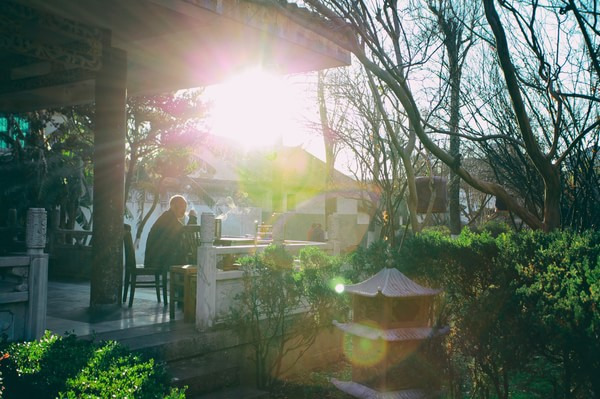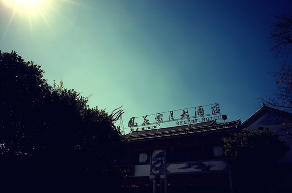 1969客栈门口的门灯,夕阳扑洒照到上面,太阳即将从苍山处落下,它随之也会被点亮。