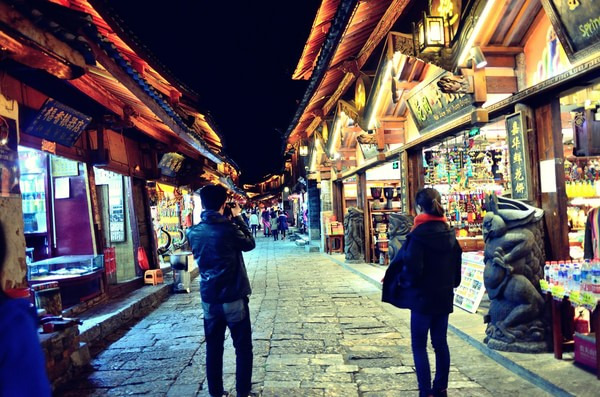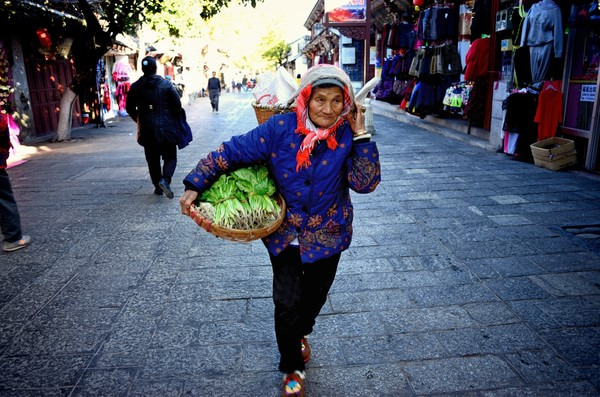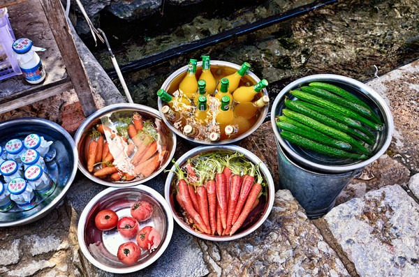 束河古镇有一条小溪顺流而下,这里的人们都用这溪水来冰镇饮料还有蔬菜,冰凉清澈。