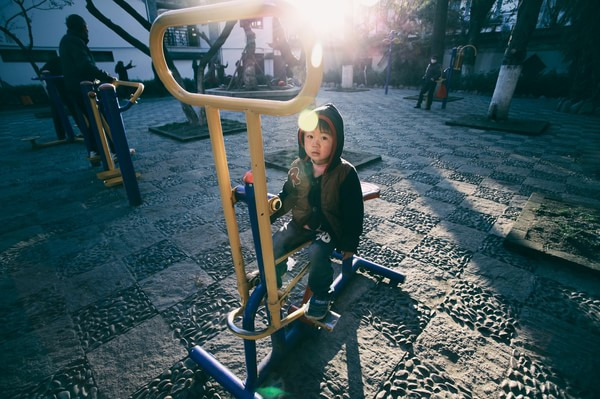 误入到了古城里的一个公园里,小朋友可能是陪家人出来锻炼的。