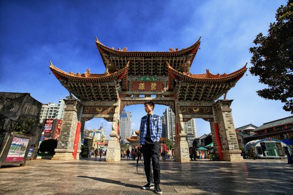 特意留出一个白天来想到昆明市内转一下,晚上10点的火车,由于时间还很宽裕,所以就在机场外多逗留了些时间,这时候云也出来了,心情变好了,就自然能跳很高