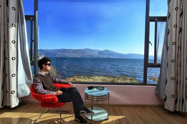 中午了才出门,洱海七人组第一个遇见的这位是泽哥,在我去找掉到洱海里面快装板到三楼阳台时候,这位正在那儿喝红酒呢,微笑一下,我就到洱海里找我的快装板去了。(那铁板儿掉水里还不尼玛的沉底儿啊,找你妹啊找......)