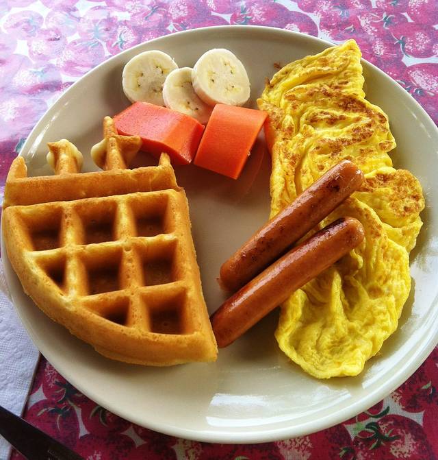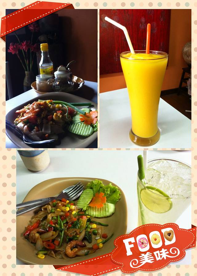 开这酒店的是夫妻俩,人非常好,家 里养了一只可爱的狗狗,狗狗也好热情,我们一来到就围着我们转,还躺在地上表演“装死”,真是太好玩了。老板娘说我们隔壁在建新的别墅,会有点吵,所以送 了我们早餐当做补偿。其实,我们住在里面根本就没听到盖房子的声音,泰国人真是太实诚了。