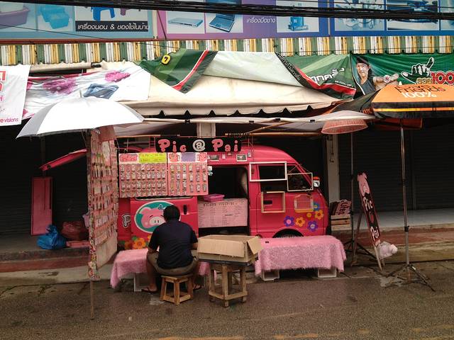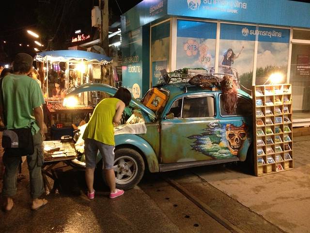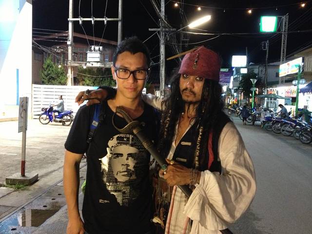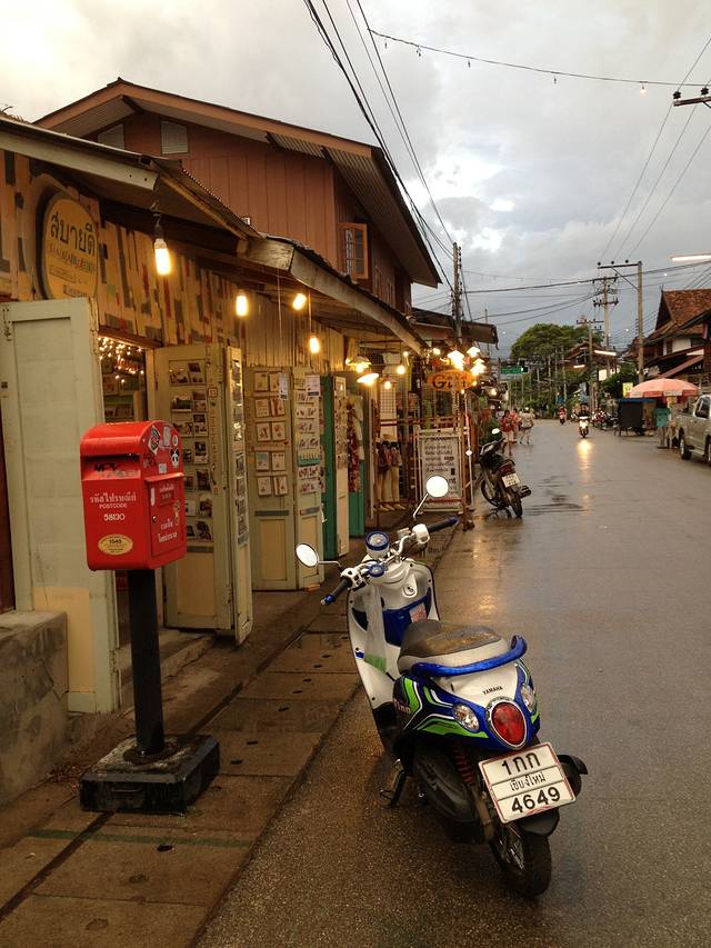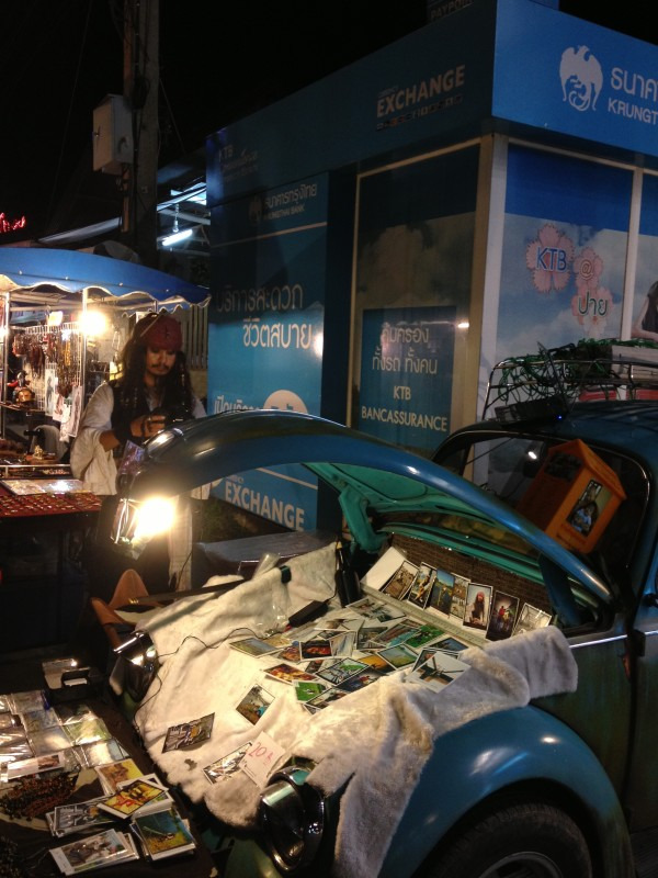 寄明信片是我每到一个地方一定要做的事情,寄给自己、亲人、朋友,留下足印也分享喜悦。Pai县的 明信片非常的小清新,很有文艺范儿,大爱!杰克船长的明信片相当出名,是一个cosplay杰克船长的人自拍自制的明信片,摆在一辆旧汽车的尾箱里,蛮有 意思的!还可以和他合影现场制作成明信片,只要40泰铢一张。我们买了他几张明信片,他还主动提出和我们拍照,泰国人真的非常nice。