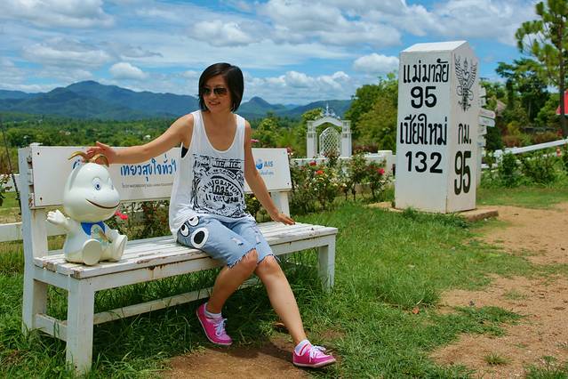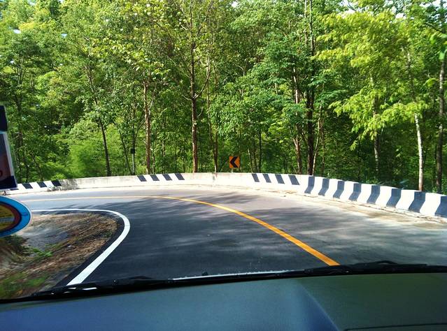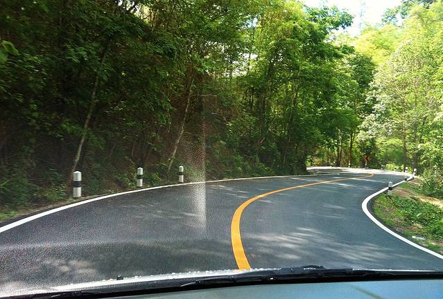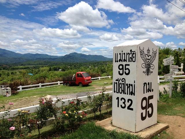 Pai县在楣洪顺府,从清迈过去有130公里路,因为全程有762个弯道,几乎是一个S接着一个S,而且是爬坡路,速度根本上不去,中途吃了个午饭,用了4小时才到。听说这段路的大巴上十有八九的人会吐,我们还在路边看到了“停车呕吐点”,我这么容易晕车的人,不自驾是必吐无疑的。