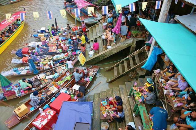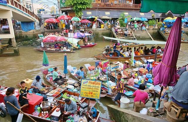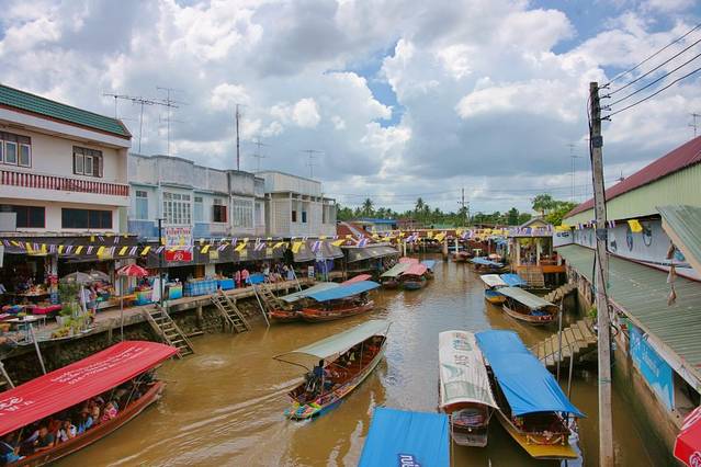 安帕瓦水上市场是泰国本土人去的水上市场,外国游客并不多,难怪和我们同车的都是泰国人。