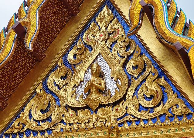 大皇宫和寺庙的建筑当然不必多说,非常壮观、华美,值得一提的是从码头出来到大皇宫路边的榴莲,真的是太好吃了。我们吃了两个,靠近码头的贵一些,140泰铢一个,距离码头稍远一点就只要100泰铢一个。这边也不称斤卖,都是论个的,吃的我们那叫一个爽啊!100泰铢,20元人民币,在国内只能买到一牙而已,这里是如此新鲜美味的一个啊!真想打包十个八个回去慢慢吃。
