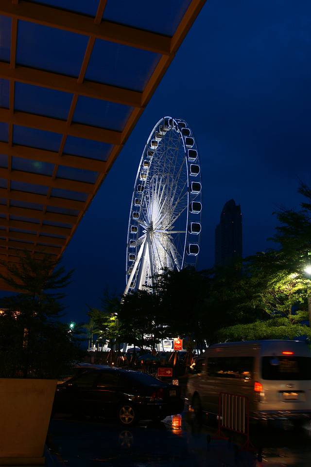 找了一家看起来还不错的餐厅吃了晚饭,距离人妖秀开场时间尚早,就先去坐了摩天轮。摩天轮250泰铢一个人,起初觉得有点贵,上去之后发现真不贵,转了一圈又一圈,设施服务都很好,可以在上面俯瞰夜景,不过因为下雨和天黑,也看不到太多的东西。