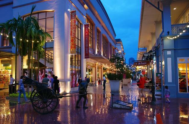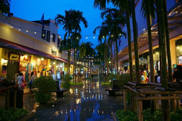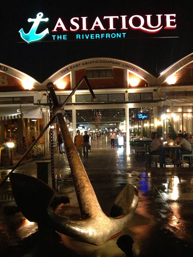 从船上下来就看到一大片商业区,这就是河滨夜市了。房子都不高,格局四四方方,完全颠覆了我对泰国夜市大排档的概念。这里的街道整齐、干净,环境优雅,似乎和夜市那样的市井文化挂不上钩。后来知道这个河滨夜市曾经是丹麦The East Asiatic公司建造的仓库,现在这个夜市有1500多家商铺和40多家餐厅、酒吧,还有一个人妖秀的表演场。