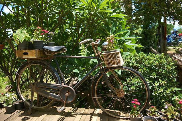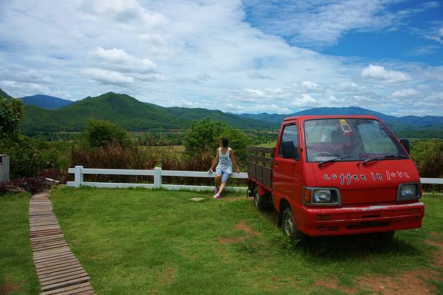 早上换了附近的另一家旅馆——赛送宾馆 (Saithong Guest House),小院子和房间很有泰国特色,只是房间小了点,当然160元一晚的价格能住这样的地方感觉性价比还是不错的。放下行李稍微留恋了一会儿别致的小院,发了会儿呆,就去取车到Pai县了,今晚这里只是我们行李的住处,我们要向Pai县进发在那里过夜呢!