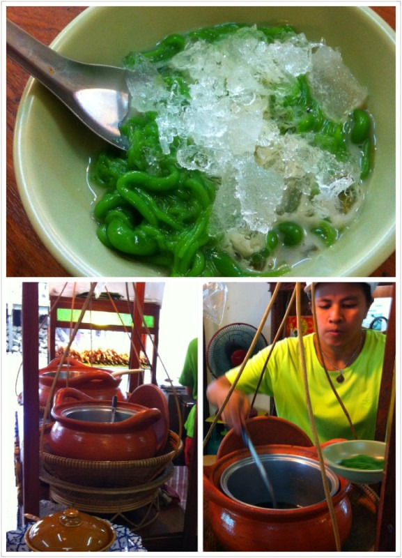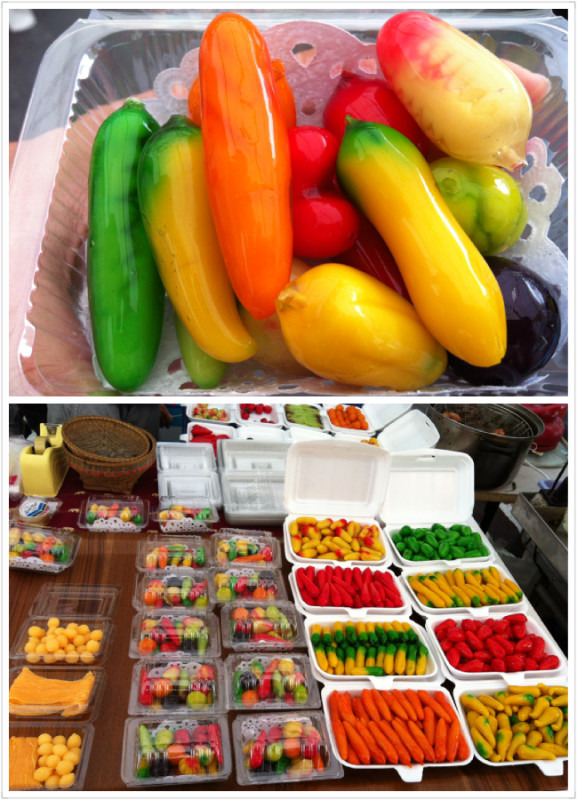 今 天在暹罗广场还偶遇了泰国美食节,玲琅满目的美食啊!有一种很漂亮的食物不知道是什么名称、什么材料做的,看着太不像吃的了,太好看了,就买了一盒。吃起 来更过瘾,外面的一层是脆脆的好像果冻那样的感觉,咬到里面却好像栗子泥那样细腻软滑。那感觉就好像是咬了一口荸荠,一嚼是栗子。大爱啊!下次去泰国一定 要多买点来吃。