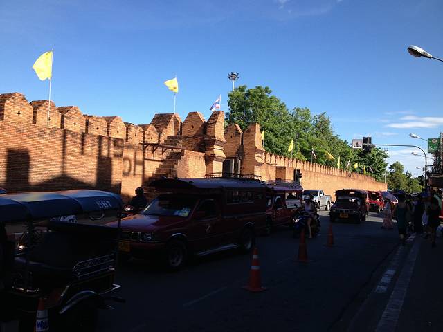 在租租车(http://www.zuzuche.com )可以预定清迈的汽车,价格和在当地租车的价格差不多,在机场就可以拿车。我们租的是50美元一天的雷诺,但是到现场因为没有这个车了,更换了比雷诺大的七座车,但是马力才1500cc,性能上差了很多。因为租车网上有说明:如果达到取车点没有品牌的车,有权更换其他同级别车,所以,我们也没什么话好说。因此建议不要选贵的,一两百元的小车更适合在清迈驾驶,又便宜又省油。