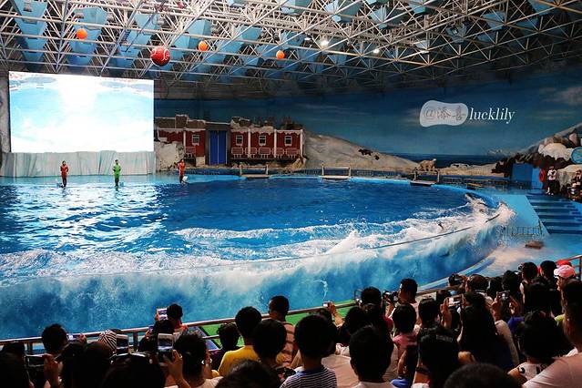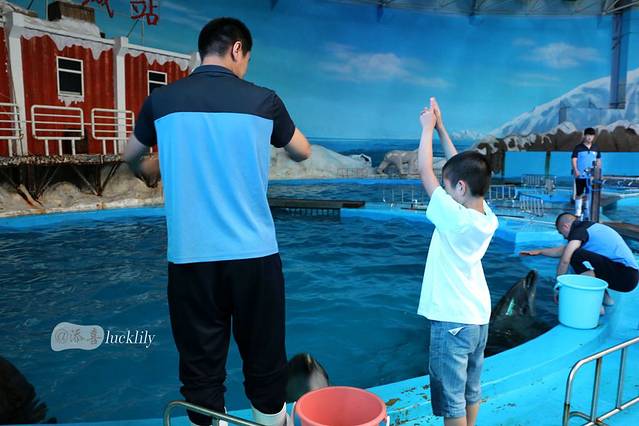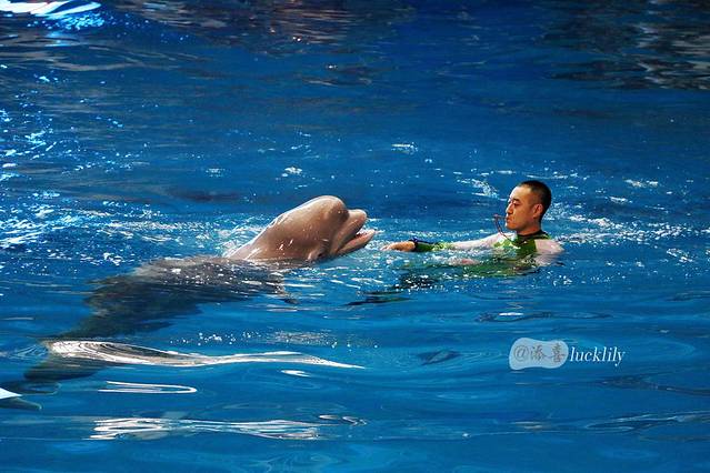 青岛海昌极地海洋世界的有着最受游客喜欢的极地表演场,在这里,海豚、海狮、伪虎鲸们是演技实力派的明星,而与我所到往过的其他各地海洋世界的表演不同的 是,青岛海昌极地海洋世界的表演更增加了人与动物之间的同场表演互动环节,也让人们更能够深切的体会到海洋动物与人之间的浑然天造的默契感情。