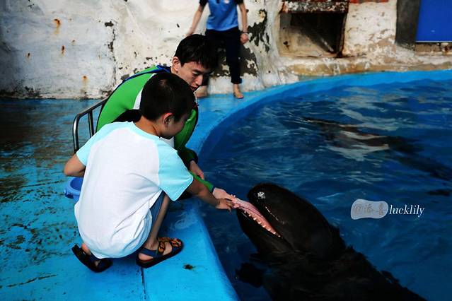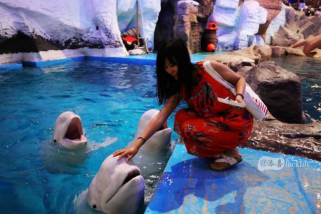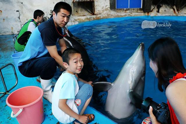 海豚是海洋动物中最温顺也是最易驯服的,青岛海昌极地海洋世界非常有特色的一个项目就是给到游客与海洋动物零距离接触的体验机会,我带着孩子去过泰国曼 谷、香港以及国内很多地方的海洋世界,一般最多就是让游客与动物合个影,能够让游客与海洋动物零距离接触的几乎没有。所以这次旅行对于我和孩子都是极具纪 念意义的。