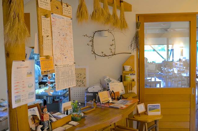 咖啡馆除了咖啡、茶点和甜品,午餐只有不多的几款,也有套餐。店不大,款不多,却吸引得如此人气。户外座位只经营咖啡西点,几对日本男女身上披着餐厅提供的毛毯,悠闲地喝着咖啡,凉亭下的他们坐在绿树红花的环抱间,欣赏田园美景,一切显得怡人。