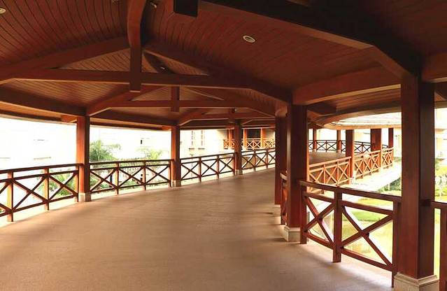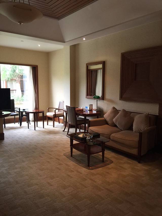 当领导安排我下礼拜到弥勒湖泉酒店参加年中业内考核会议的时候,心中有点小高兴暗字窃喜。弥勒一座新生代年轻的城市,这座城市近几年发展的相当的快,当地是建设理念是围绕在不破坏生大自燃生态的同时更多保留生态环境,因为湖泉人文气息是每位游客所向往的,早就想去弥勒玩玩了,可第逢周末打电话预订房间时每座酒店都没房间了,那叫一个郁闷啊。趁着这次公司会议大好时节一定要好好的弥勒游玩游玩,千万不要浪费这次机会了,另一个让我激动的消息是本次会议报到地点更是我高兴不已的地点设在是湖泉酒店A座大堂,那可谓是高大上的地方。听说湖泉酒店客房分为A、B、C、E四座,每座的地理位置和房型有所不同,房间的设计更是大不相同了,但这次有幸的是入住了湖泉酒店A座同时也是当地最高档的酒店,办理入住后开始找房间乘坐电梯到二楼,天啊,这房间怎么个找法啊,四周都是房间,往哪走都不知道,顿时就不知所措了,正在这时一位工作人员面带微笑向我们走来,带领我们找到自已房间,听工作人员的介绍才知A座分为ABC三院,听着就有点小复杂,此进时的你是不是听着有点晕呢,是啊,我都分不清东南西北了。不过,让大脑休息一会,再出来就不是刚刚那样摸头不着脑的了,很容易就找到了自已的想去的而之前找不到的,这里的房间房型及生态环境可谓好得无可挑剔啊。它属东南亚风格,全木雕装饰,房间宽大舒适,简直就是美美哒。