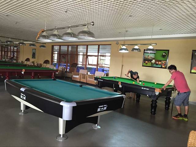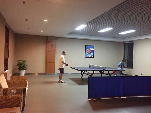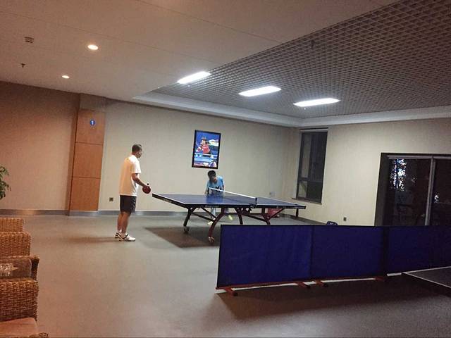 会议结束用完餐后,总想休闲娱乐一下下。询问酒店前台的工作人员有没有休闲运动的地方?电瓶车把我们送到了湖泉酒店D座,随着工作人员的指引我们来到了二楼的乒乓球室,这里的乒乓球桌可多了,可那么多的桌子还是供不应求啊,刚好还有一桌赶紧跑过去先认着再说,虽说台球不是太精,但只要能把球打进洞,我们也可以乐开了花。乒乓球也打半个小时,听刚刚工作人员介绍说三楼是羽毛球场地,随后乘着电梯来到三楼,哇噻!硕大的羽毛球场地呈现在眼前,把相关准备工作做好后形如上场啦,虽然技术的不很专业,但本着段练第一。还有健身器材、跑步机,上去跑两下。我们把这里可以玩的都玩了一把。保持不放过的信念,自己都为自已的表现给个赞赞赞。