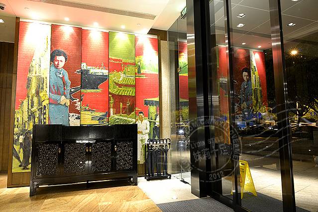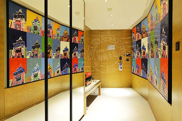 一进门右手边的装饰油画其实是由五幅不同内容的画拼成的,均是由酒店附近人文风情的老照片为创作基础绘制的油画。我是学艺术设计出身,对这类内容很有兴趣,于是详细请教了酒店工作人员。五幅画由左至右分别为: