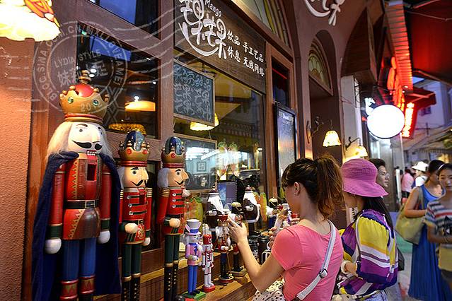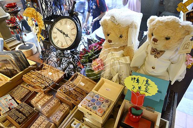 奶茶店兜售各种很贵的小纪念品。