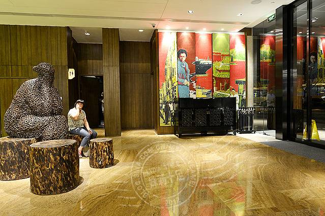 酒店大堂雕塑是用码头船舶上生锈的螺丝螺母等镂空焊接成的,主题是“等待”。酒店所在地旧时叫做“水仙码头”,自18世纪以来就是厦门出洋口岸,近200年来自闽南数以万计的华人都是由此出发远渡南洋讨生活的。早年华人下南洋都为青壮年男子,家乡留守母亲妻子年年盼望下南洋的家人有日归家。了解了背后的故事,顿时觉得大堂雕塑采用“等待”这个概念是多么的鲜明精准。雕塑周围还配了系船舶缆绳的旧木桩,都是真正的原木,并非其他材料仿制的。