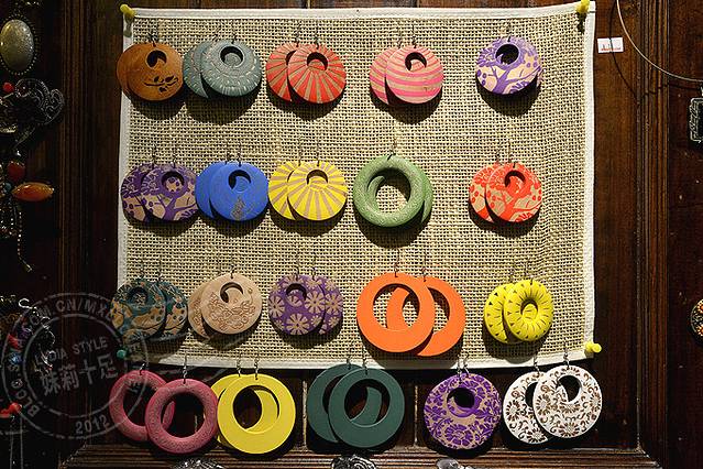 木质的彩色耳环。