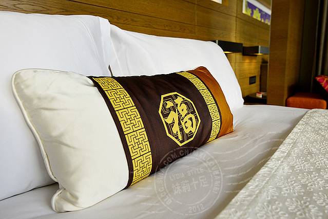 福字靠枕。这个“福”除了我们中国人传统的吉祥之意,还有更深层含义:酒店原址是日据时代厦门最热络的讲古场(就是说书的馆子)“福星旅社”,酒店特别订制了福字靠枕,也是取这个意思。