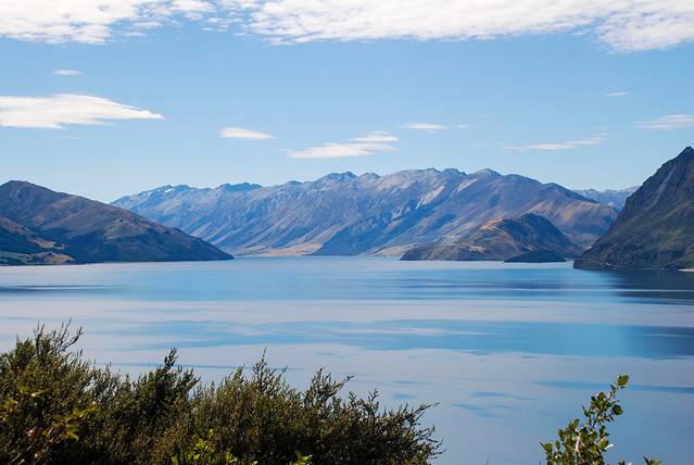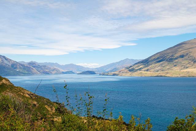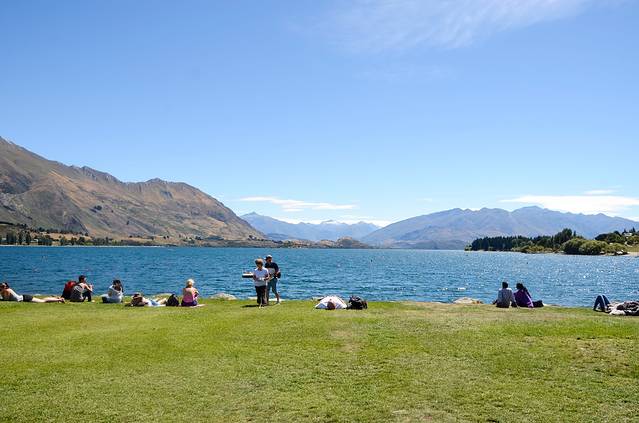不用起的很早,因为这一天路程不是很远。早上收拾好出发,还没到中午变到了超大超蓝的瓦纳卡湖。于是停下来玩水欣赏风景~