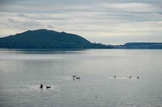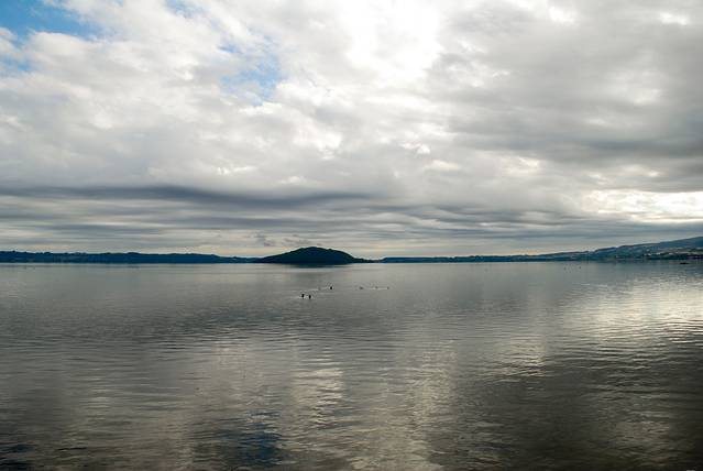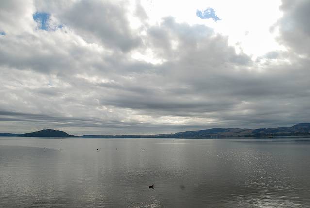 一早起的比较早,因为今天的行程依旧比较紧。早上的罗托鲁瓦湖没有太阳的照射显得有些阴郁。