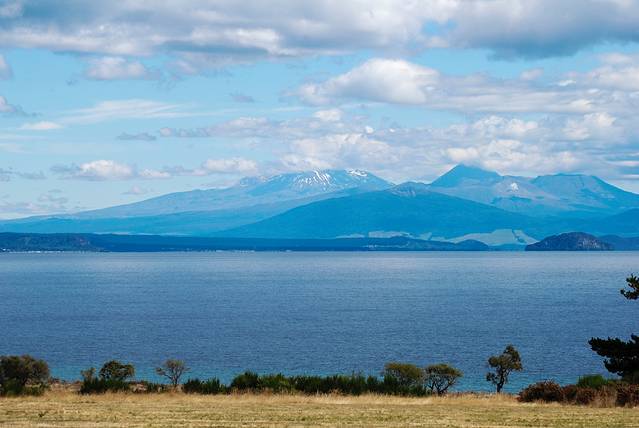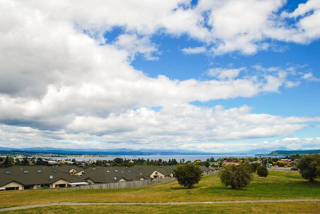 过了这个制高点之后就进入了陶波市,很繁华的市中心,遍布在如海一般广阔的陶波湖边。从这里还可以远眺到汤加里罗国家公园内的高山~