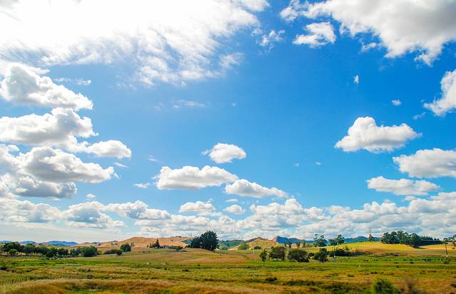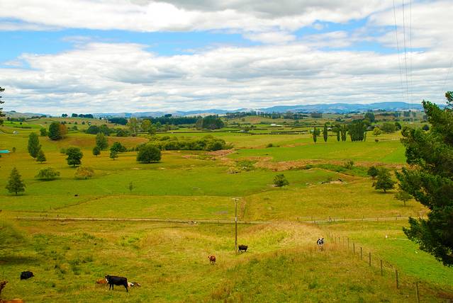 路上的风景刚开始看感觉超赞!白云蓝天,牛群羊群,后来才知道,这景致在新西兰再普通不过了!