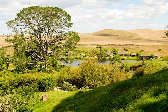 看完地热奇观,我们又赶往向往已久的霍比屯!!选择的是从Sheir出发,全程有导游介绍,但是后来因为要爬个小山姥姥姥爷走起来不方便,所以大姨和老妈便带着姥姥姥爷脱离了集体,混进一个散漫的中国团里,只有我和老爸还跟着导游逛。不得不说导游的介绍不错,说了选址原因啊,场景布置啊等等,能满足粉丝们。这里我先浇灭一些粉丝的希望吧,霍比屯的每个屋子里都没有装饰,都是空荡荡的,当时导游给我们打开看了。所有电影里的场景都是后期制作的。但是绿龙酒吧里的免费姜汁啤酒是真的,参加的人可以从三种啤酒里选,个人比较喜欢姜汁啤酒。